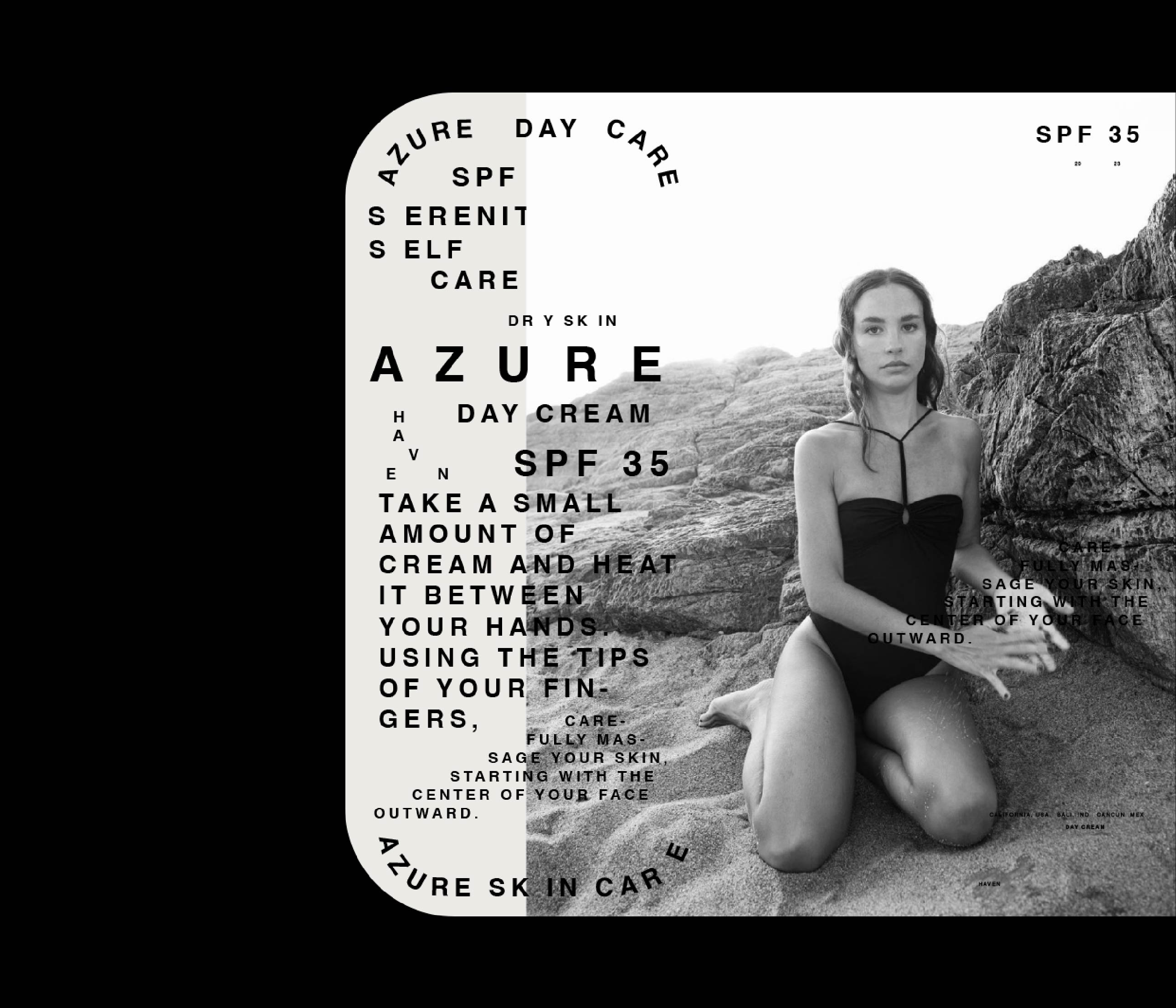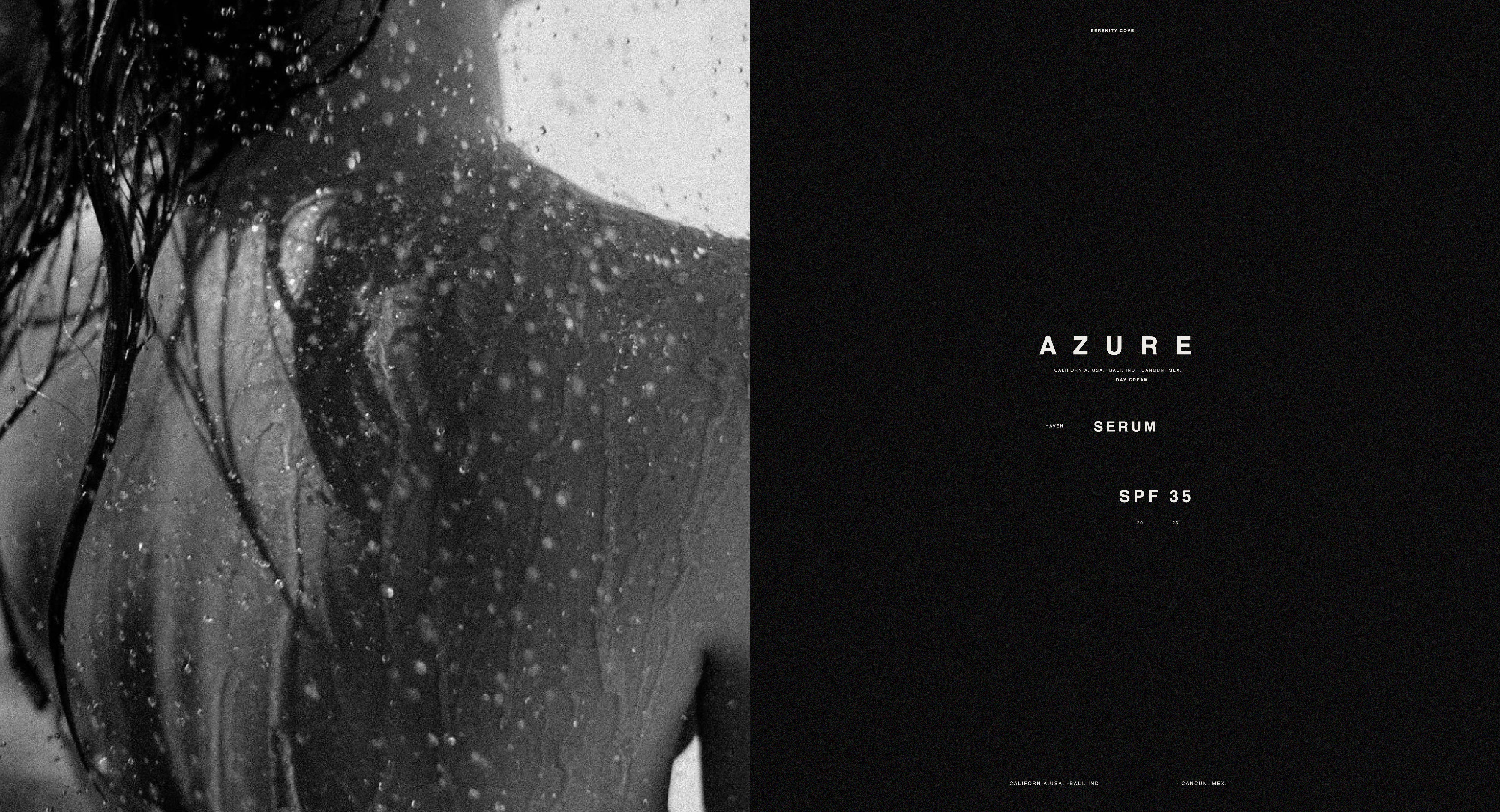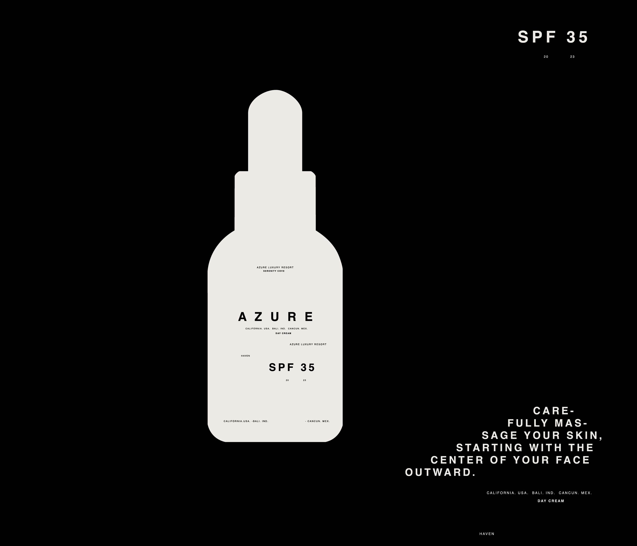 Azure is a concept project developed around a skincare serum and sunscreen line. We created the full brand identity and packaging design, building a visual universe inspired by purity, light, and the calming tones of the sea. The result is a clean and contemporary aesthetic that reflects protection, freshness, and everyday wellness, translating the essence of modern skincare into a cohesive branding and packaging experience.